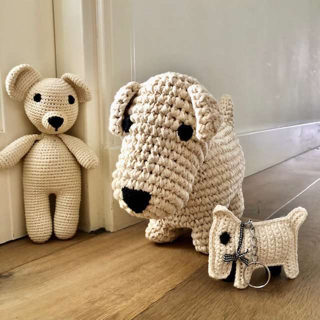hond Bobby gebroken wit – katoen – handgehaakt in Nepal