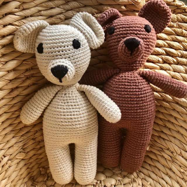 hondje Bella knuffel off white – biokatoen – handgehaakt in Nepal
