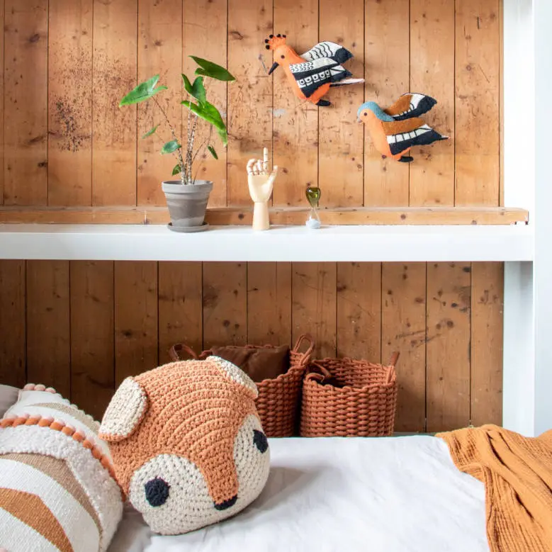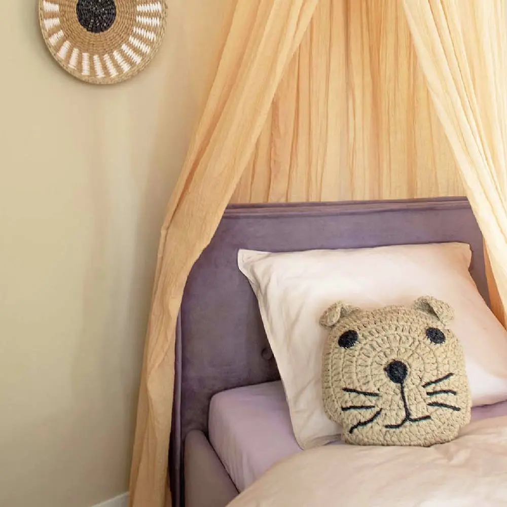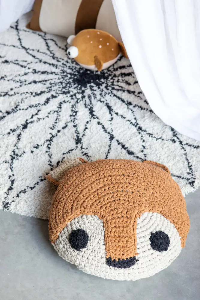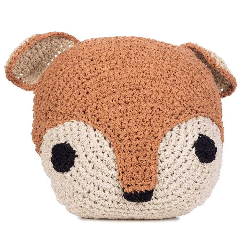 Met de hand geknoopt kussentje in de vorm van een eekhoorn dierenkop met een prachtig gedetailleerde afwerking! Deze eyecatcher voor op de kinderkamer is met zorg gemaakt van geknoopt katoen aan de voorkant en heeft een gladde katoenen stof aan de achterkant. Dit prachtige kussen heeft een authentieke en natuurlijke uitstraling en zal elke bank, bed of kinderspeelplek een eigen unieke en warme sfeer geven. Wordt geleverd inclusief vulling.