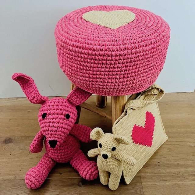 kruk laag met hoes hartroze – katoen & hout – handgehaakt in Nepal