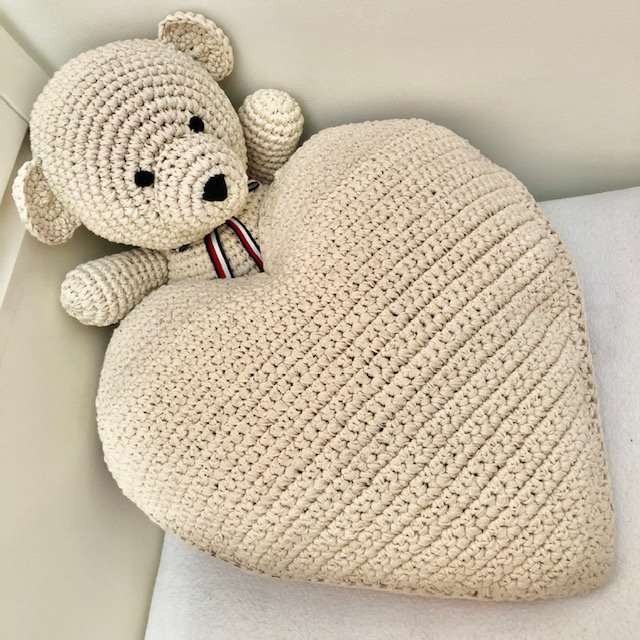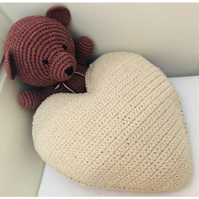 kussen hart gebroken wit – katoen – handgehaakt in Nepal