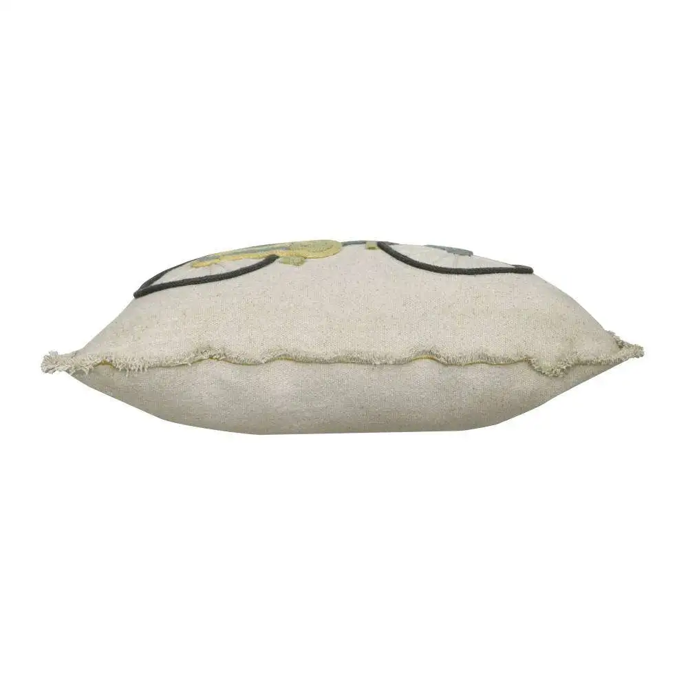 Stoer rechthoekig kussen met daarop een hand gestikte fiets van katoenen koorden uit de Eco City collectie van Lorena Canals. Dit met de hand gemaakte kussen is gemaakt van een natuurlijke niet geverfde canvas stof en heeft een verborgen ritssluiting aan de achterkant. De randen zijn afgewerkt met contrasterend borduursel in geel garen en korte franjes aan de randen. De afneembare hoes is wasbaar in de wasmachine! Super leuk om te combineren met andere items uit de Eco City collectie!