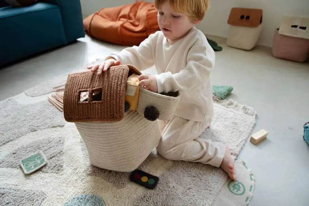 Ontworpen om te spelen en te leren over een groenere toekomst. Groene Steden; een plek voor plezier, waar coole kinderen fietsen en e-voertuigen de plaats innemen van rokerige auto’s. Een stad die milieuvriendelijk is, net als de wasbare vloerkleden en textielaccessoires, gemaakt van naturel katoen en niet-giftige kleurstoffen van Lorena Canals. De Eco-city collectie; van wasbare katoenen vloerkleden tot stoffen speelgoed, kussens, poefjes, een wandhanger en de leukste manden. Ontworpen om te mixen en matchen en eindeloos veel speelplezier. Laat de kinderen ontdekkend spelen in een wereld van stille voertuigen en jij kunt genieten van een stijlvol ingericht huis!