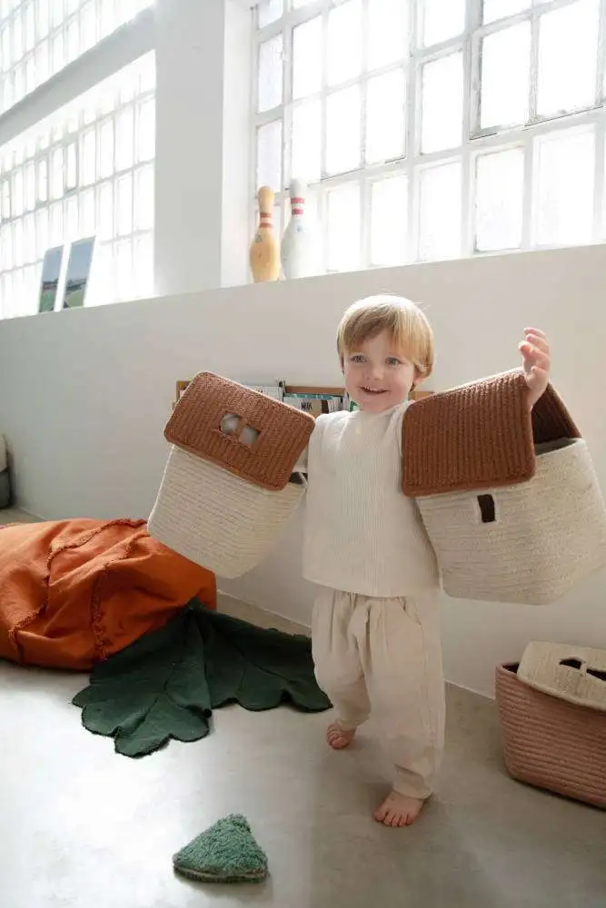 Prachtig met de hand gemaakte katoenen mandje in de vorm van een huis. Deze decoratieve mand komt uit de Eco City collectie van Lorena Canals en is beschikbaar in 2 kleuren. Erg leuk om speelgoed of ‘schatten’ in op te bergen!