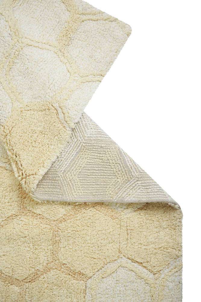 Wasbaar rechthoekig vloerkleed Sweet Honey uit de collectie PLANET BEE. Het is geïnspireerd op het geometrische honingraatpatroon en gemaakt van zacht getufte kleurvlakken met een licht verloopeffect van ivoor naar goud. Het zeshoekige patroon is getuft door met verschillende poolhoogtes te spelen om een rijke textuur te bereiken met een speels 3D-effect. Een tijdloze eye-catcher voor in de kinderkamer, speelhoek of elk ander plekje in je huis. Maak je eigen ‘Planet Bee’ compleet en combineer met de andere artikelen uit de collectie!