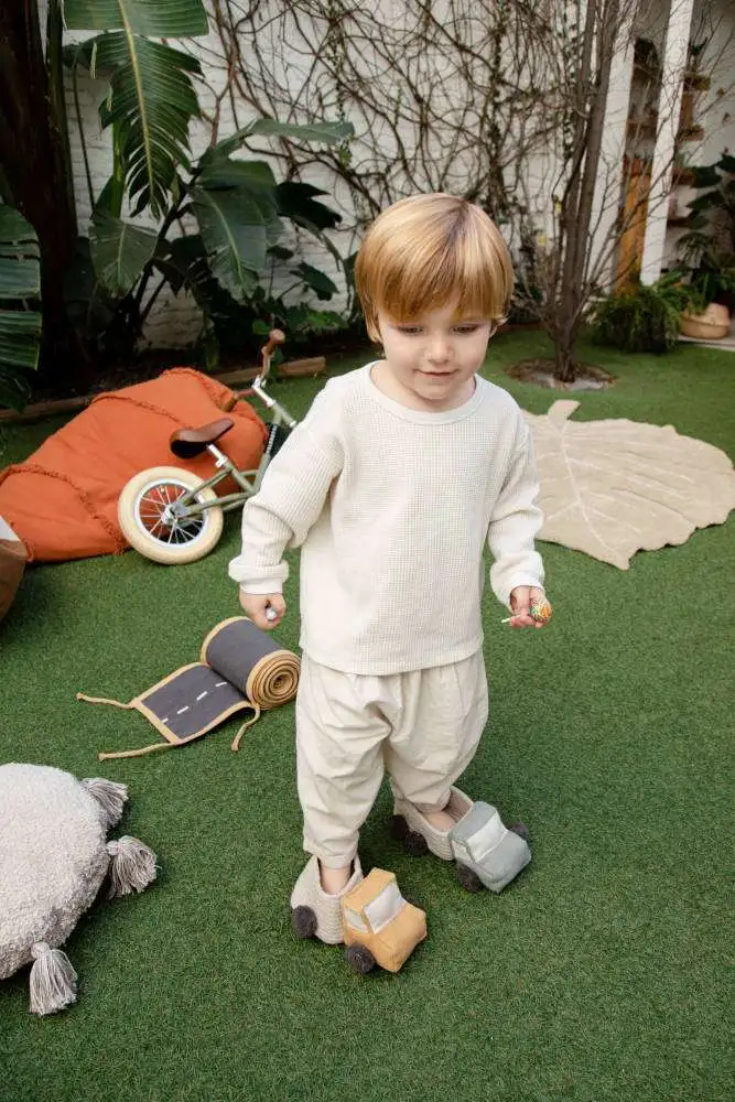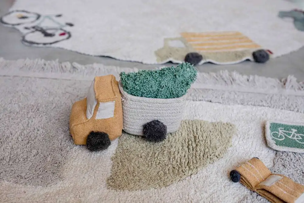 Ontworpen om te spelen en te leren over een groenere toekomst. Groene Steden; een plek voor plezier, waar coole kinderen fietsen en e-voertuigen de plaats innemen van rokerige auto’s. Een stad die milieuvriendelijk is, net als de wasbare vloerkleden en textielaccessoires, gemaakt van naturel katoen en niet-giftige kleurstoffen van Lorena Canals. De Eco-city collectie; van wasbare katoenen vloerkleden tot stoffen speelgoed, kussens, poefjes, een wandhanger en de leukste manden. Ontworpen om te mixen en matchen en eindeloos veel speelplezier. Laat de kinderen ontdekkend spelen in een wereld van stille voertuigen en jij kunt genieten van een stijlvol ingericht huis!