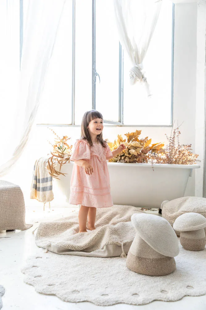 Dit prachtige vloerkleed ‘Picone Ivory’ is geïnspireerd op de vorm van een dennenappel! Het kleed is handgemaakt en komt uit de nieuwste collectie ‘Cotton Woods’ van Lorena Canals. Dit wasbare vloerkleed heeft ronde uitsparingen aan de rand, waardoor de canvas basis zichtbaar wordt.