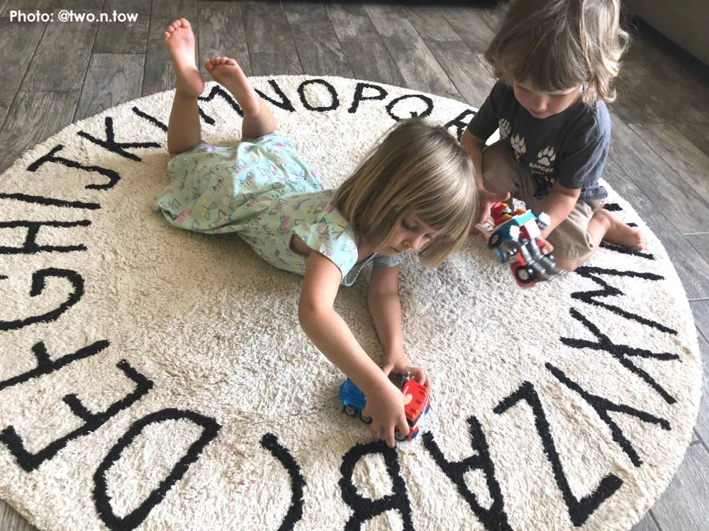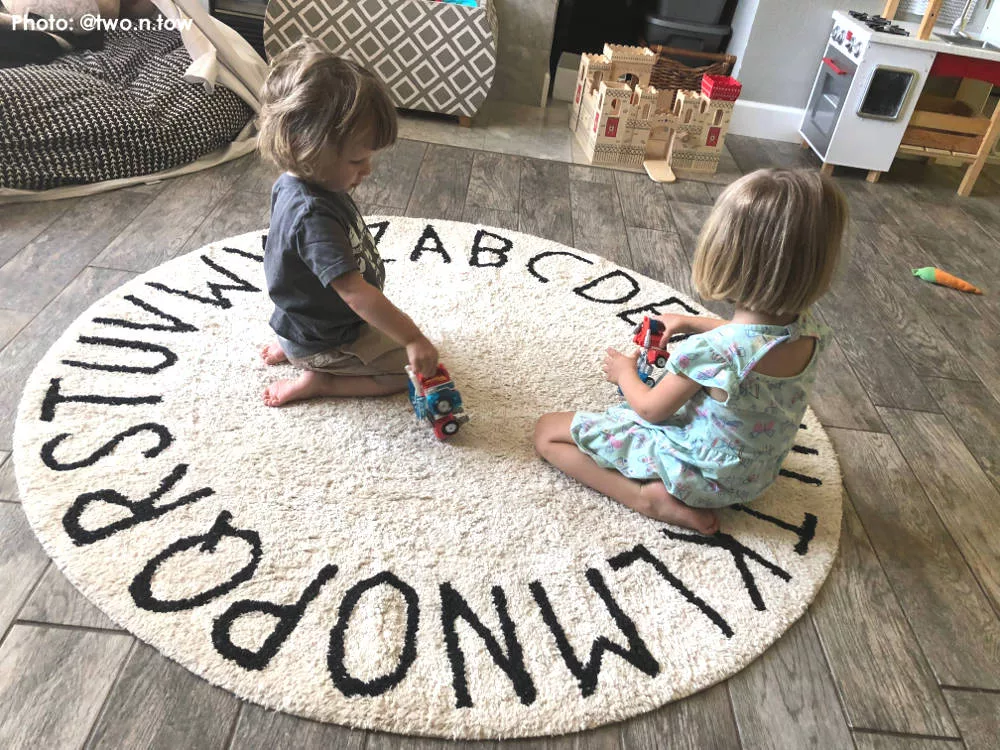 Rond kindervloerkleed ‘Round ABC’ in de kleur ecru van het Spaanse Lorena Canals. Dit prachtige vloerkleed is handgeknoopt en heerlijk zacht aan de blote voetjes. En dit tapijt is nog leerzaam voor kinderen ook. Spelenderwijs leren ze namelijk het alfabet. Heerlijk liggend op dit kleed het ABC oefenen. En hij staat nog super leuk in je kamertje ook! Bovendien is dit super zachte vloerkleed van Lorena Canals perfect om op te kruipen, liggen en spelen. Hij staat prachtig op de babykamer of kinderkamer en geeft de ruimte meteen warmte en sfeer. Staat ook heel gaaf in de speelhoek!