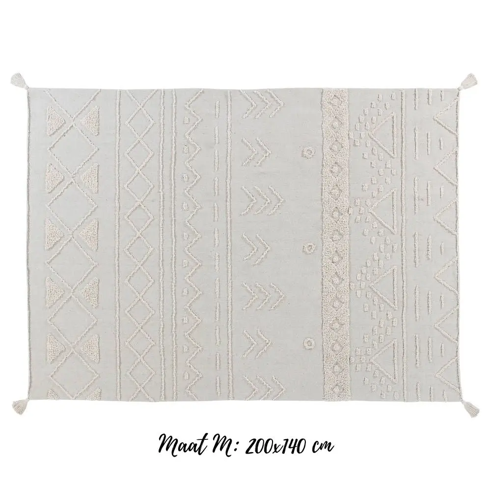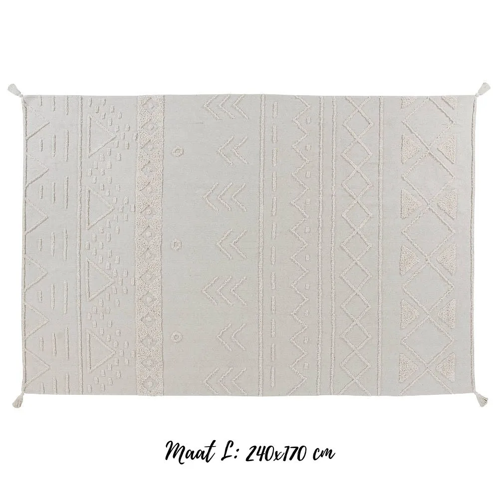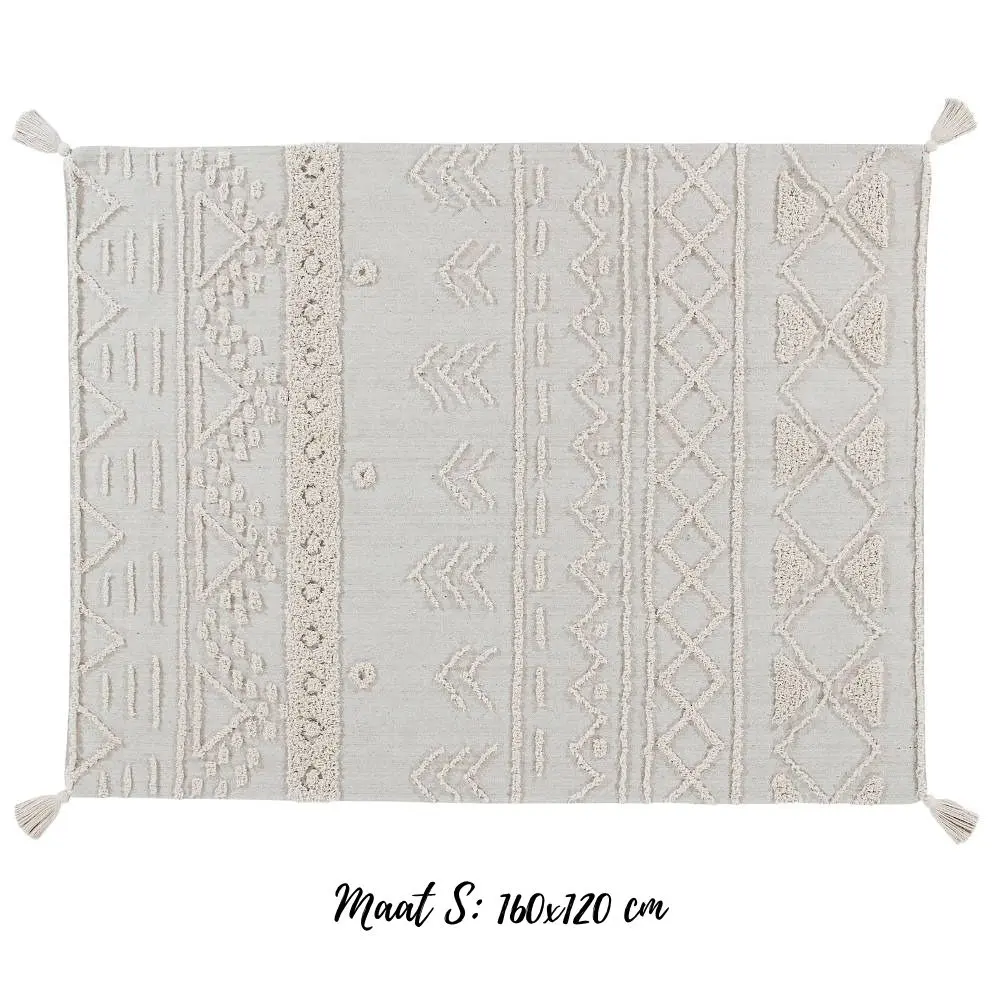 Prachtig vloerkleed uit de Re-Edition-collectie van Lorena Canals. Deze prachtige collectie is geïnspireerd op de bestsellers uit het verleden alleen dan in een nieuw jasje gestoken. Een collectie vol met warme en aardse kleuren en alles is met de hand gemaakt. Vloerkleed Tribu Natural is een rechthoekig vloerkleed uitgevoerd in de naturel kleur ecru. De vrolijke kwastjes en het reliëf in dit vloerkleed geven het zijn bijzondere uitstraling. Dit met de hand geknoopte kleed staat bovendien super in de babykamer, kinderkamer of woonkamer. Het maakt de ruimte helemaal af en zorgt direct voor meer warmte en sfeer!
