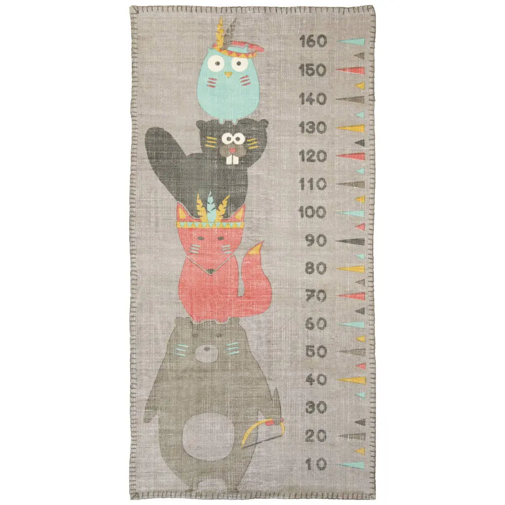 Heel gaaf vloerkleed welke tevens gebruikt kan worden als wandkleed / groeimeter! Ook heel leuk om als loper neer te leggen op de gang, voor de kinderkamer bijvoorbeeld. Dit prachtige kleed is met de hand geweven met een stonewashed print van lieve bosdiertjes opgestapeld als een totempaal in indianenthema. Zo stoer! Deze eyecatcher voor op de kinderkamer is met de hand geweven van 100% katoen, geprint en gestonewashed. Daardoor heeft het kleed een stoere en geleefde uitstraling. Waar mag dit bijzondere kleed liggen of hangen?