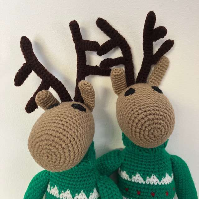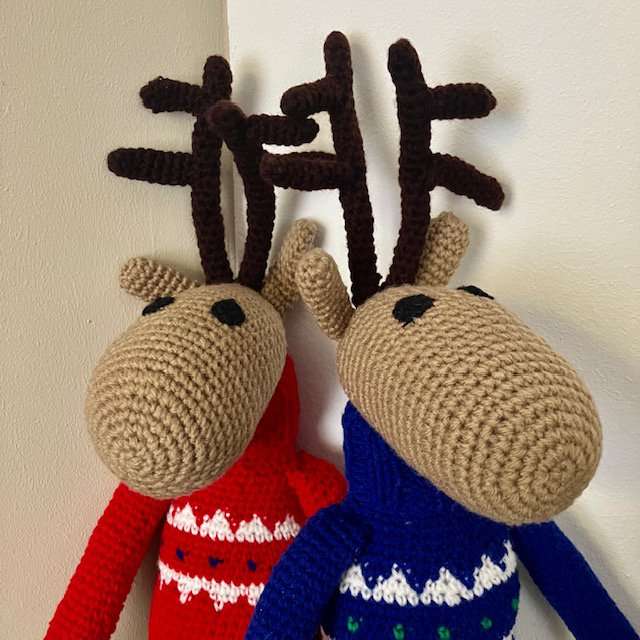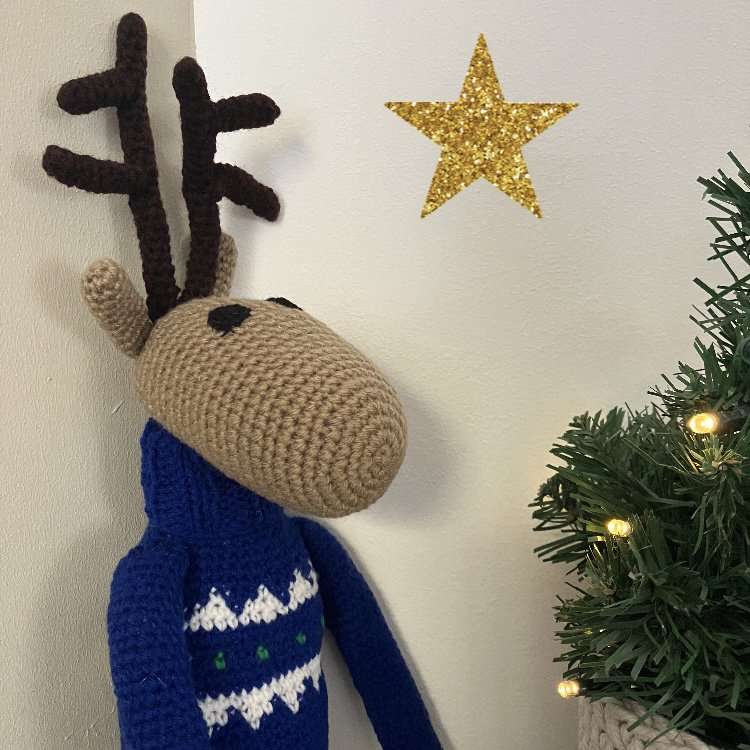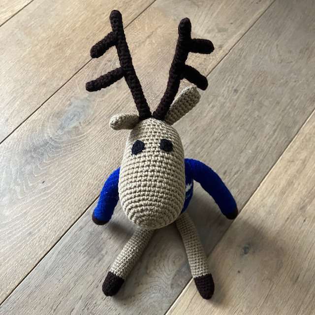 rendier met coltrui blauw – 100% zachte wol – handgehaakt in Nepal