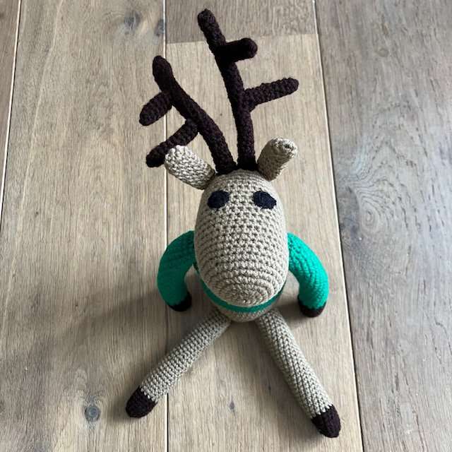 rendier met coltrui groen – 100% zachte wol – handgehaakt in Nepal