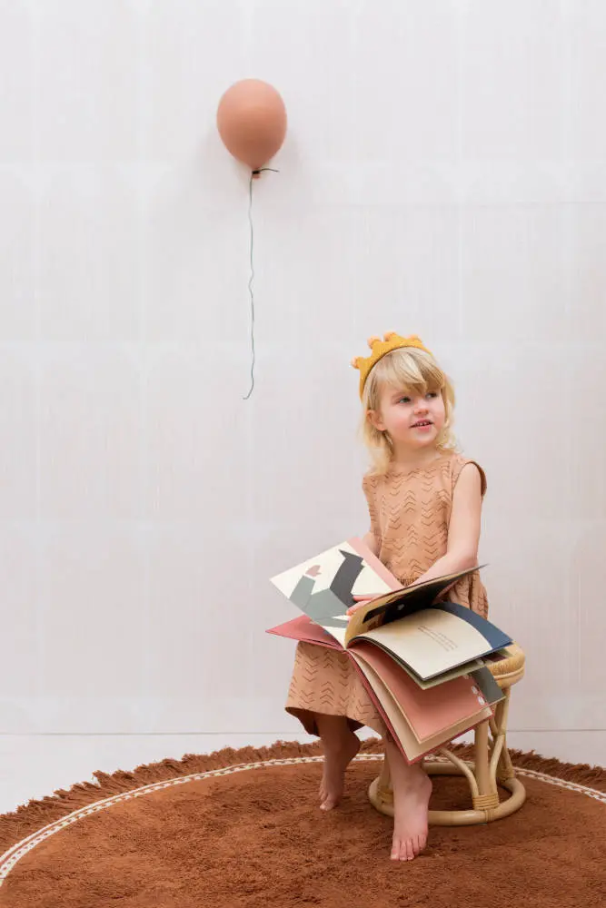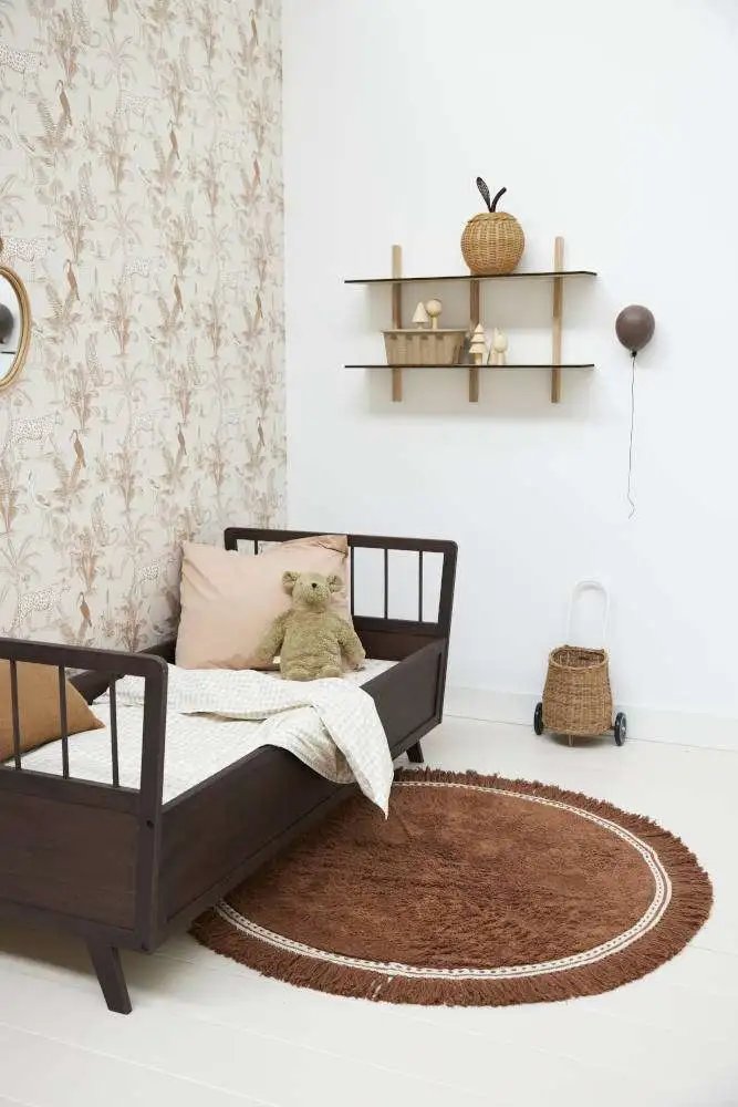 Heel mooi handgemaakt vloerkleed van een prachtige kwaliteit van het merk Tapis Petit. Het met de hand getufte vloerkleed Anna Brownie is heerlijk zacht voor de blote voetjes! Dit vloerkleed heeft een volle warme bruine kleur. De speelse bies met franjes geeft dit tapijt nog meer karakter. Dit kleed van 100% getuft katoen is zo zacht dat je er heerlijk op kunt kruipen, liggen en spelen. Het staat prachtig op de babykamer of kinderkamer en geeft de ruimte meteen warmte en sfeer!