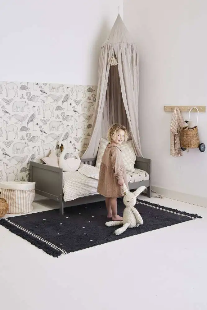 Praktisch vloerkleed dat met de hand gewassen mag worden. Ook heel fijn voor kinderen met een allergie of overgevoeligheid voor stof. Het is gemaakt van 100% katoen en is koel in de zomer en warm in de winter!