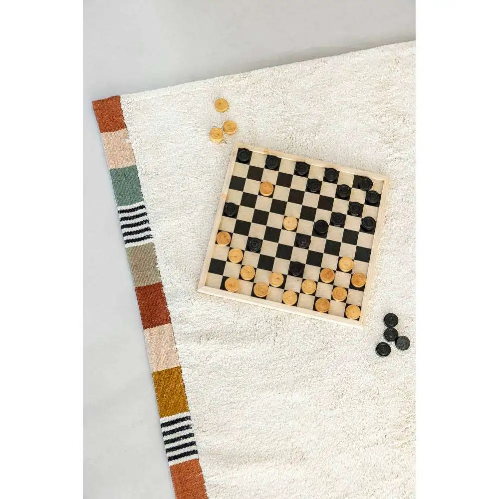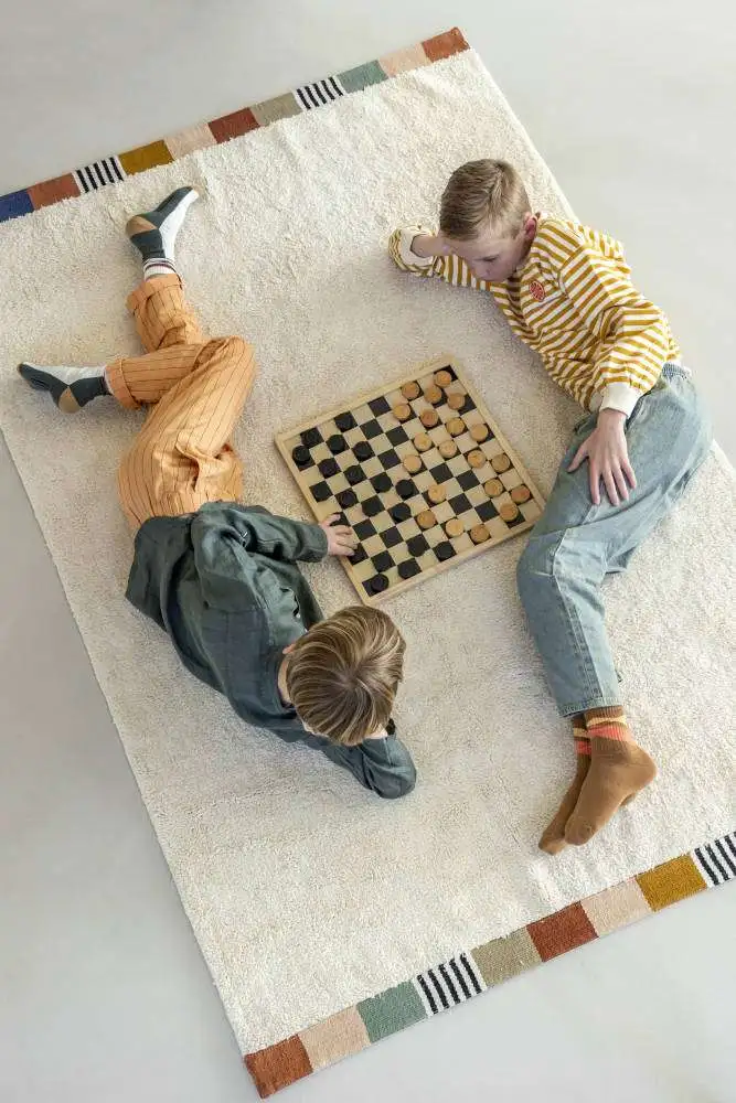Praktisch vloerkleed dat met de hand gewassen mag worden. Ook heel fijn voor kinderen met een allergie of overgevoeligheid voor stof. Het is gemaakt van 100% getuft katoen en is koel in de zomer en warm in de winter!
