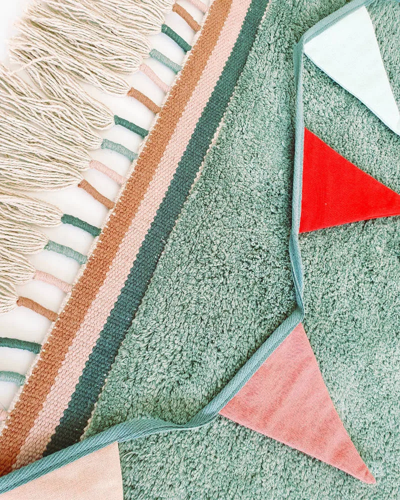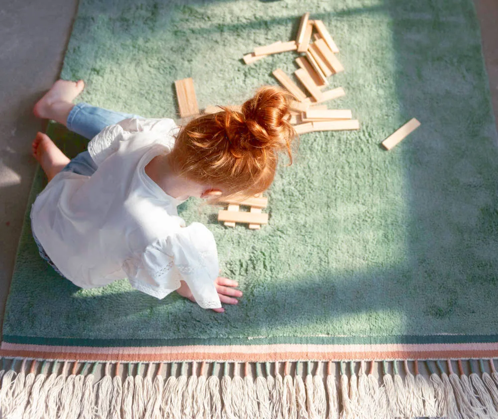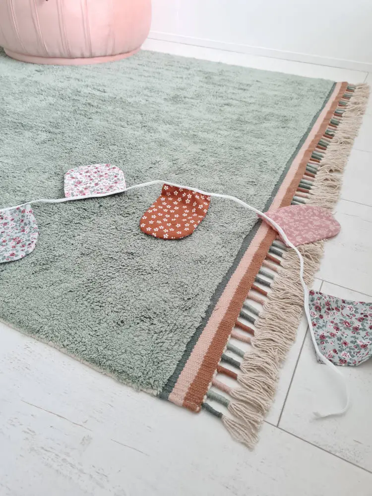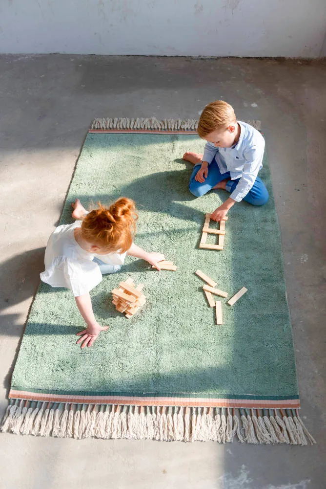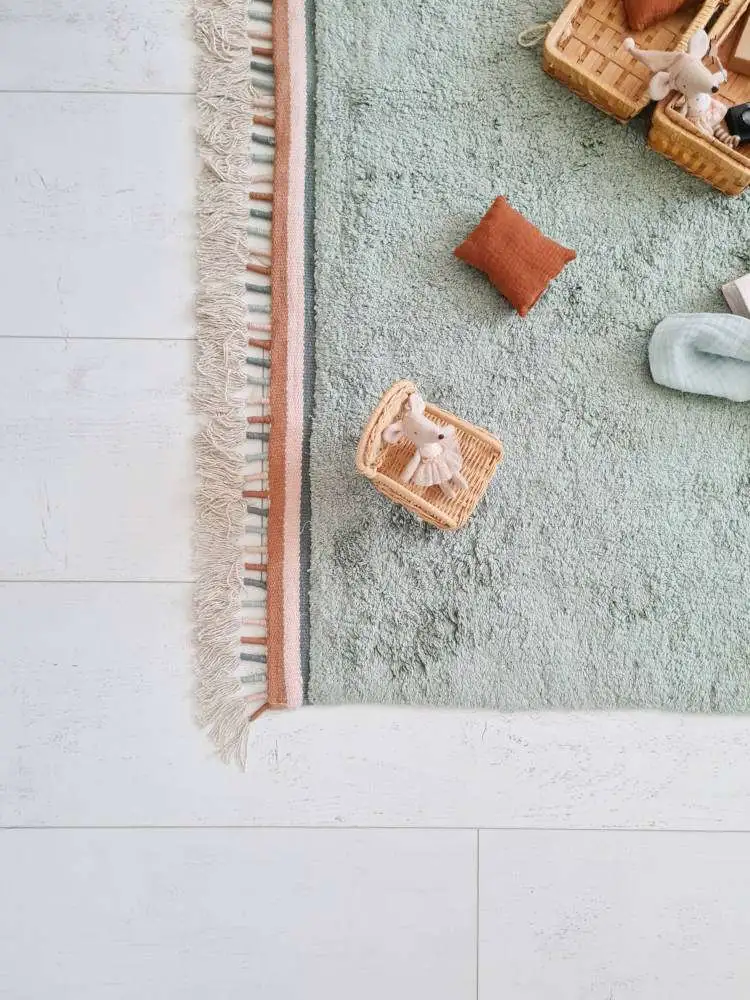 Praktisch vloerkleed dat met de hand gewassen mag worden. Ook heel fijn voor kinderen met een allergie of overgevoeligheid voor stof. Het is gemaakt van 100% katoen en is koel in de zomer en warm in de winter!