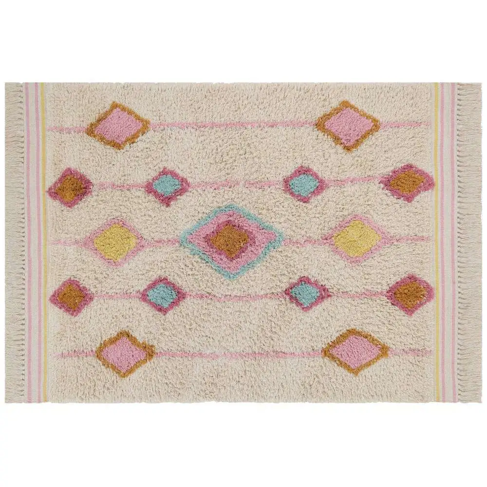 Praktisch vloerkleed dat met de hand gewassen mag worden. Ook heel fijn voor kinderen met een allergie of overgevoeligheid voor stof. Het is gemaakt van 100% getuft katoen en is koel in de zomer en warm in de winter!