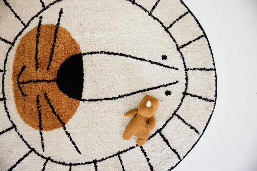 Lief leeuwtje zoekt baasje! Is het geen dotje, deze leeuw met zijn naturelle kleur? Super zacht en fluffy is dit met de hand gemaakte vloerkleed van 100% getuft katoen. Dit trendy tapijt spreekt kinderen van alle leeftijden aan en hij ligt en speelt heerlijk! En natuurlijk staat dit kleed super op de kinderkamer, babykamer of speelhoek. Maak de ruimte compleet met dit leuke tapijt en creëer zo je eigen sfeer!