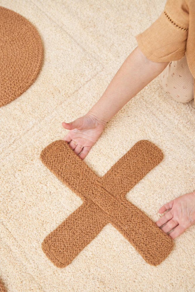 Met het interactieve vloerkleed Tic Tac Toe zijn je kinderen wel even zoet. Het tapijt voelt lekker warm en comfortabel, om heerlijk lang op te spelen. Geïnspireerd op het nostalgische spel Boter-Kaas-En-Eieren, geeft dit speelse vloerkleed een nostalgisch tintje aan de ruimte. Dit mooie vierkante vloerkleed is crème kleurig en wordt geleverd met rondjes en kruisjes van bruin kleurige katoen, verpakt in een bijpassend katoenen tasje. Het met de hand gemaakte tapijt is gemaakt van gerecycled katoen en is dus ook nog eens een duurzame en milieuvriendelijke keus! Zo ontzettend leuk voor in de babykamer of kinderkamer. Maar ook in bijvoorbeeld een speelhoek geeft het de ruimte meteen warmte en sfeer! Tapis Petit werkt met duurzame en Oeko-Tex gecertificeerde materialen en alle vloerkleden zijn met de hand gemaakt.