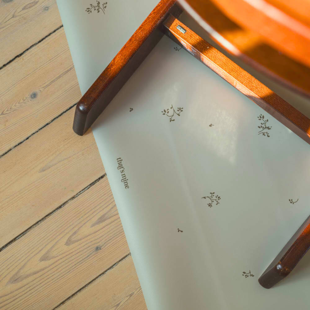 Zo mooi en zó handig! Antislip knoeimat oftewel Splash mat van het Deense merk That’s Mine. Deze variant ‘Secret Garden Olive’ is uitgevoerd in een zachte pastel olijf kleur met een lief bloemen printje. De knoei mat is ontworpen voor onder de kinderstoel om gemorst eten op te vangen. Maar de mat is heel veelzijdig en kent oneindig veel toepassingen. Leg ‘m neer op de vloer waar er gegeten, gespeeld of geknutseld wordt. Je kind kan het ook gebruiken in zijn spel, je creëert er snel een knus speelplekje mee. Of leg de mat als mega placemat op de tafel tijdens het eten of knutselen. Alles kan!