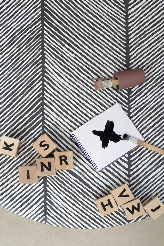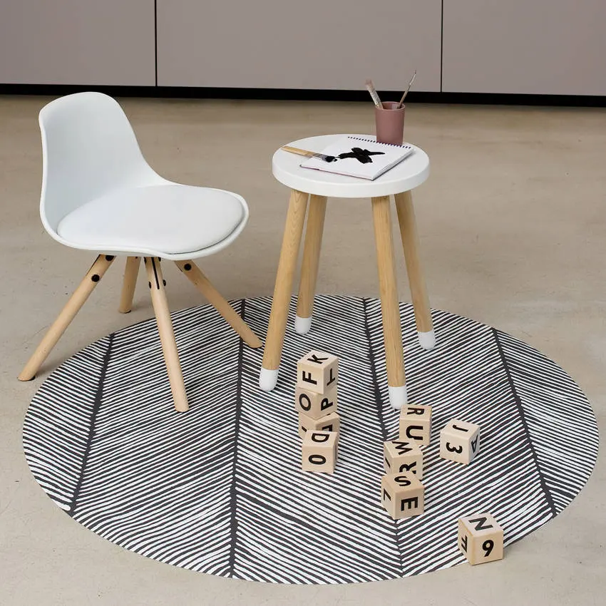 Zo mooi en zó handig! Antislip knoeimat oftewel Clean Wean Mat uit de nieuwste lijn Sandy Lines. Deze variant Anchor is uitgevoerd in een donker grijze kleur op een off-white ondergrond. De knoei mat is ontworpen voor onder de kinderstoel om gemorst eten op te vangen. Maar de mat is heel veelzijdig en kent oneindig veel toepassingen. Leg ‘m neer op de vloer waar er gegeten, gespeeld of geknutseld wordt. Je kind kan het ook gebruiken in zijn spel, je creëert er snel een knus speelplekje mee. Of leg de mat als mega placemat op de tafel tijdens het eten of knutselen. Alles kan!
