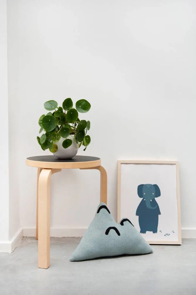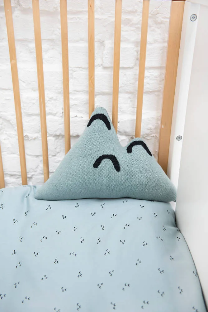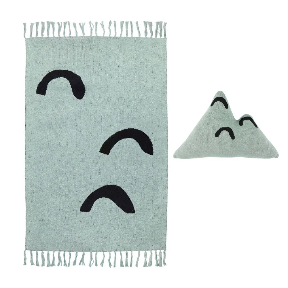 Lief knuffel kussen in de vorm van een bergketen van 100% biologisch katoen. Helemaal passend bij het vloerkleed in dezelfde mintgroene kleur met een ingebreid zwart patroon. Door producten uit dezelfde serie te combineren krijg je meer eenheid in je interieur!