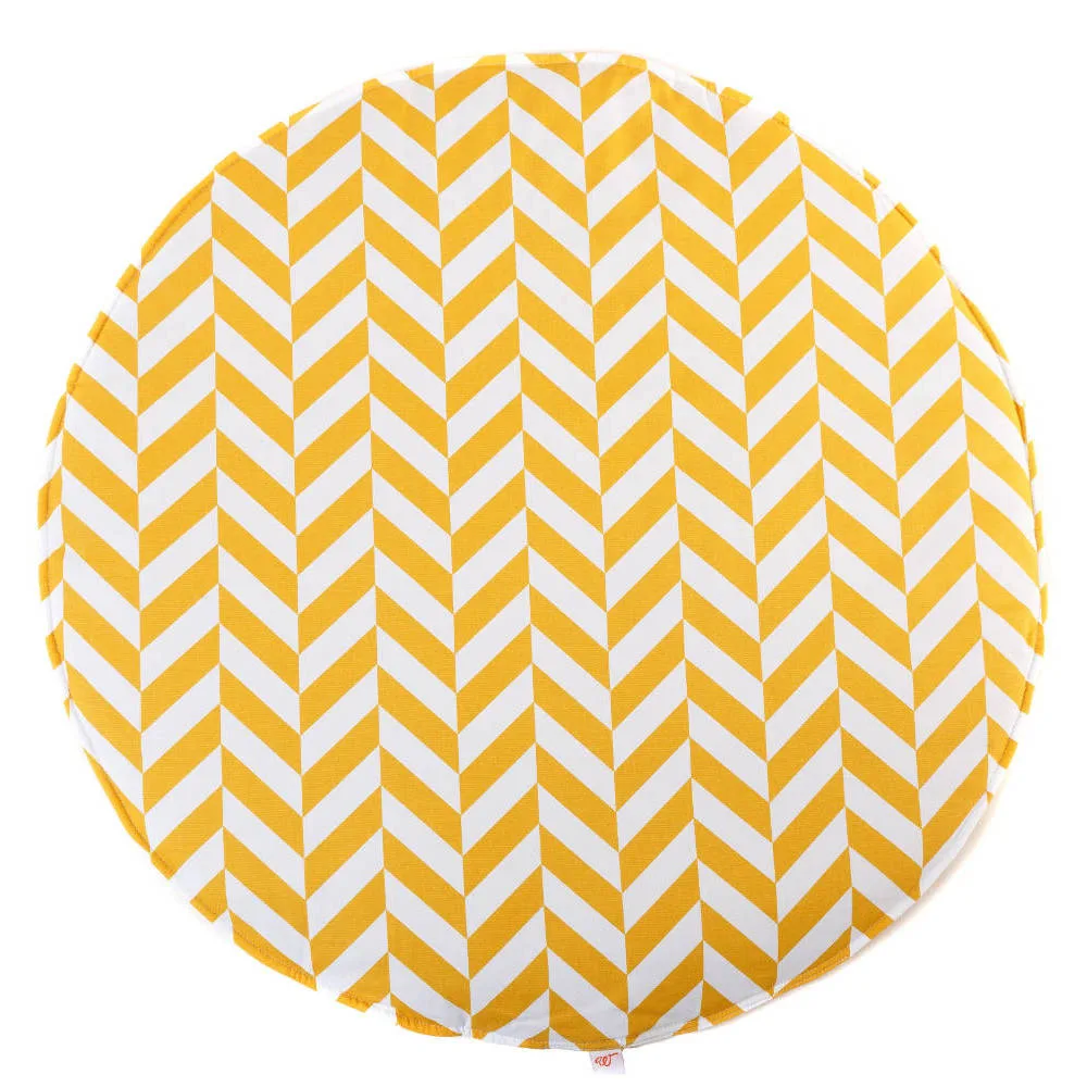 Gewatteerd rond speelkleed voorzien van een vrolijk zigzag dessin in de kleur okergeel (en wit). Het kleed is gemaakt van een sterke 100% katoenen stof, welke is gevuld met een heerlijk zachte Polyester vulling. Zowel de buitenzijde als de vulling hebben het Oeko-Tex label en zijn dus 100% veilig voor je kindje. Creëer met dit mooie speelkleed van Wigiwama een knus plekje op de grond voor je baby, een heerlijke speelplek voor je dreumes of leg ‘m in een tipi voor je iets oudere kind. Deze sfeermaker is een musthave in elke babykamer, kinderkamer of woonkamer.