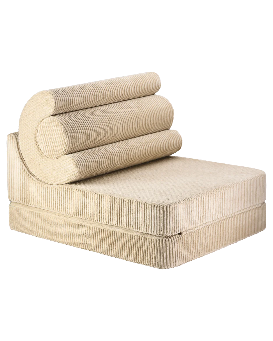 De Wigiwama Flipster in de kleur Brown Sugar is een veelzijdige kinderstoel die moeiteloos transformeert van comfortabele zitplek naar lounger, speelmat of logeerbed. De warme bruintint geeft de kinderkamer een rustige, natuurlijke uitstraling en past perfect binnen een Scandinavisch, modern of neutraal interieur.