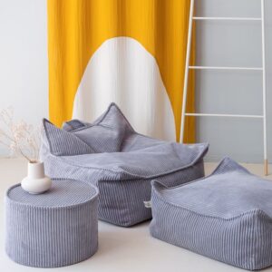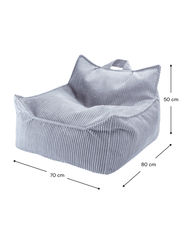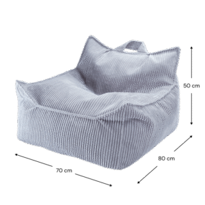 Comfortabele ‘Zitzak Stoel Blueberry Blue’ is de perfecte troon om in neer te ploffen en voorlopig niet meer uit te komen. Lekker chillen met je vriendjes of heerlijk alleen met een boekje. Verplaats ‘m met het handige handvat naar waar ’t gezellig is. De poef is gevuld met EPS balletjes. De afneembare buitenhoes is van GRS®-gecertificeerd ribfluweel geproduceerd van gerecyclede PET-flessen. Heel fijn te combineren met alle andere items van Wigiwama en bovendien een eyecatcher in de kinderkamer, speelhoek of huiskamer!