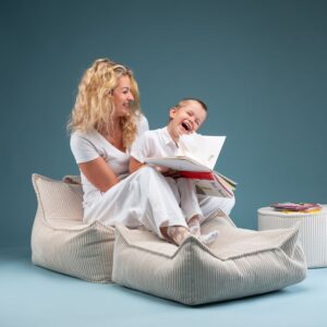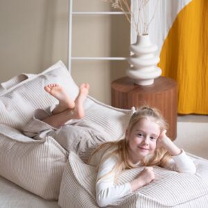 Comfortabele ‘Zitzak Stoel Marshmallow’ is de perfecte troon om in neer te ploffen en voorlopig niet meer uit te komen. Lekker chillen met je vriendjes of heerlijk alleen met een boekje. Verplaats ‘m met het handige handvat naar waar ’t gezellig is. De poef is gevuld met EPS balletjes. De afneembare buitenhoes is van GRS®-gecertificeerd ribfluweel geproduceerd van gerecyclede PET-flessen. Heel fijn te combineren met alle andere items van Wigiwama en bovendien een eyecatcher in de kinderkamer, speelhoek of huiskamer!